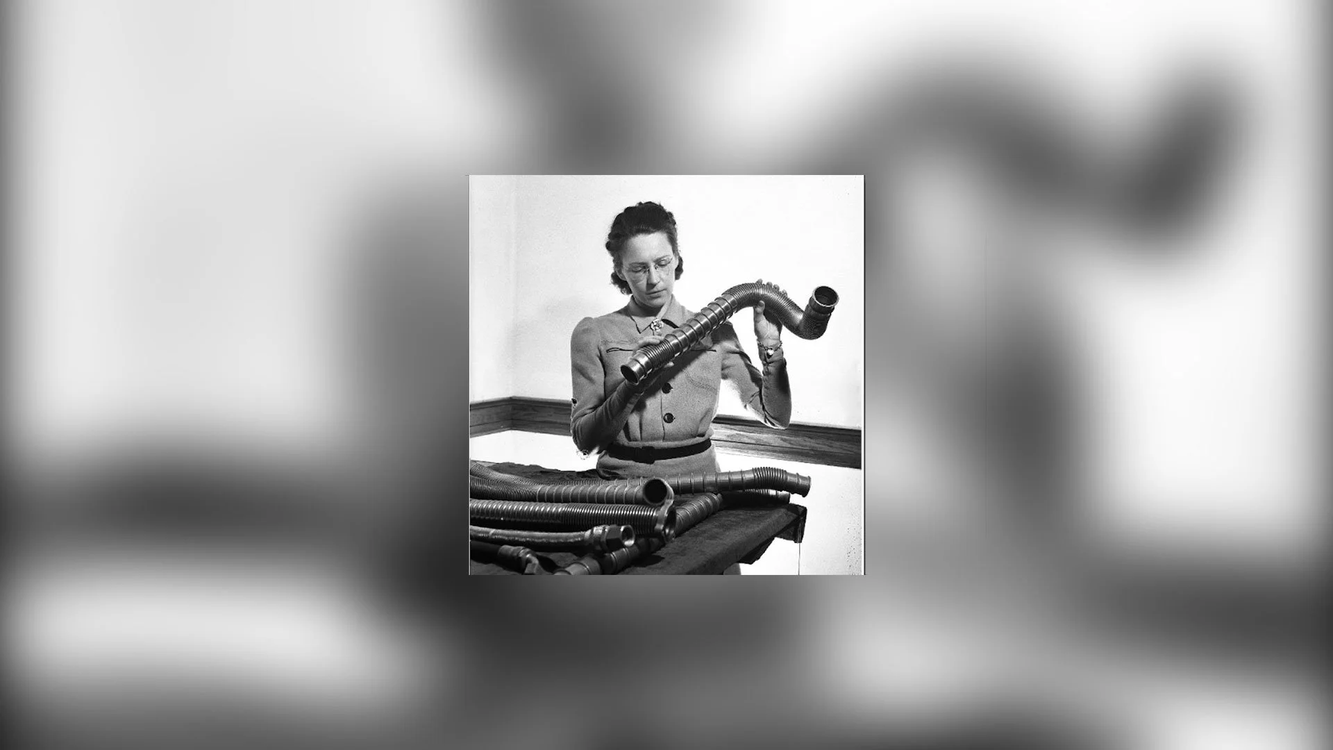 MacGill checking the welding on pipes during her time as Chief of Aeronautical Engineering at Canadian Car & Foundry, 1938-1943. (courtesy of Canada Aviation and Space Museum)