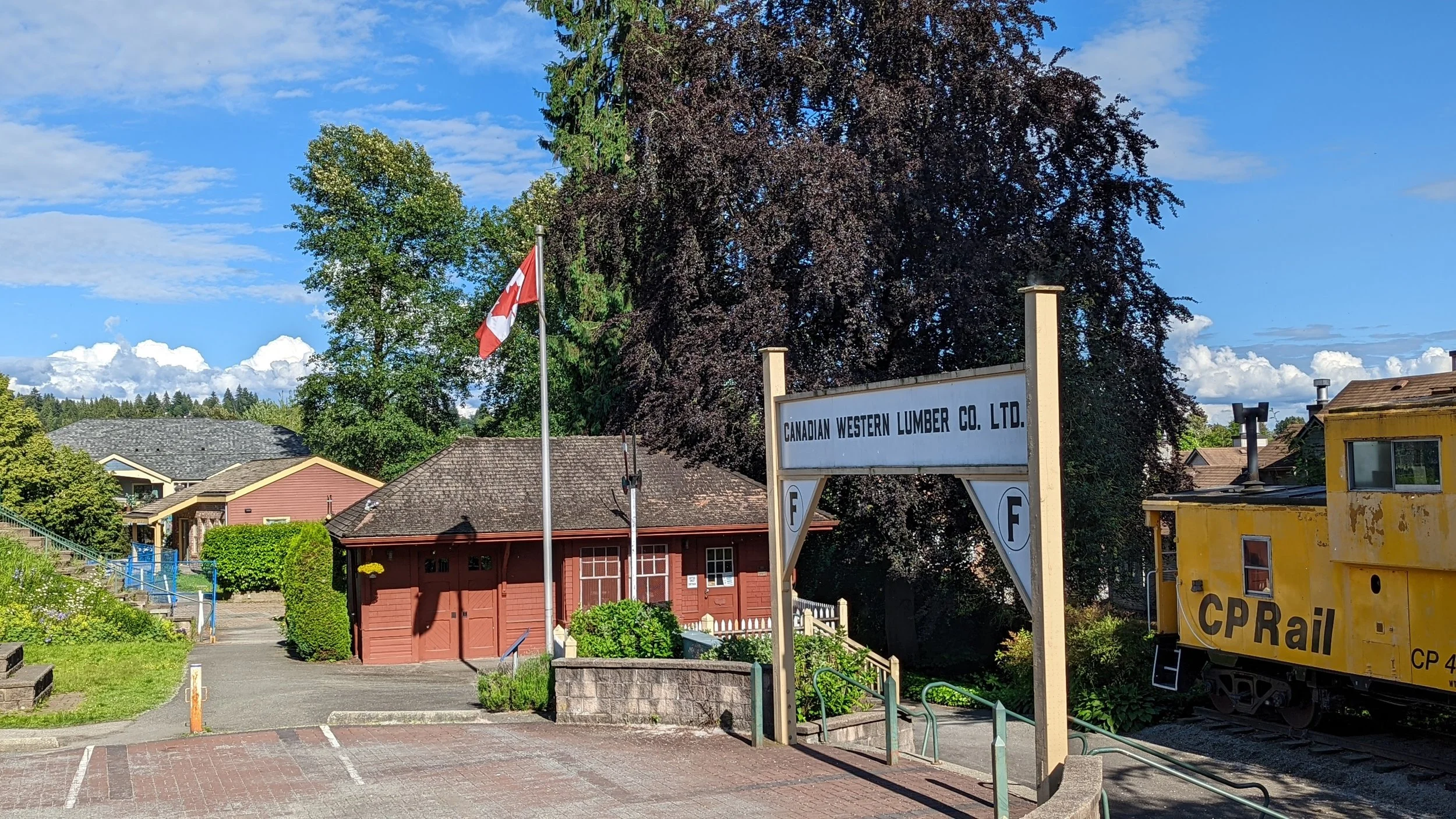 Turn to your left and head to the left side of the Fraser Mills train station. Along the side amongst the bushes you will see the last sign, called “CPR Shapes the Community.”