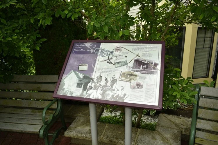 It’s time to start heading back to Heritage Square. Walk down Laval St and cross to the other side of Brunette at the lights. Walk along the sidewalk on Brunette Ave towards Begin St. On the corner of Brunette and Begin there is a little concrete alcove: here you will find the 9th sign, called “Station Agent’s House.”