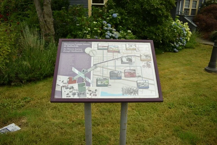 Looking for something to do outside? Interested in learning a bit more about the history of your community? Take a small stroll around the area of Mackin House Museum and check out our Interpretive Signs! This project was undertaken to share the history and heritage of French-Canadians in Maillardville, the establishment of Heritage Square, and the role of the Canadian Pacific Railway in the early days of the town.