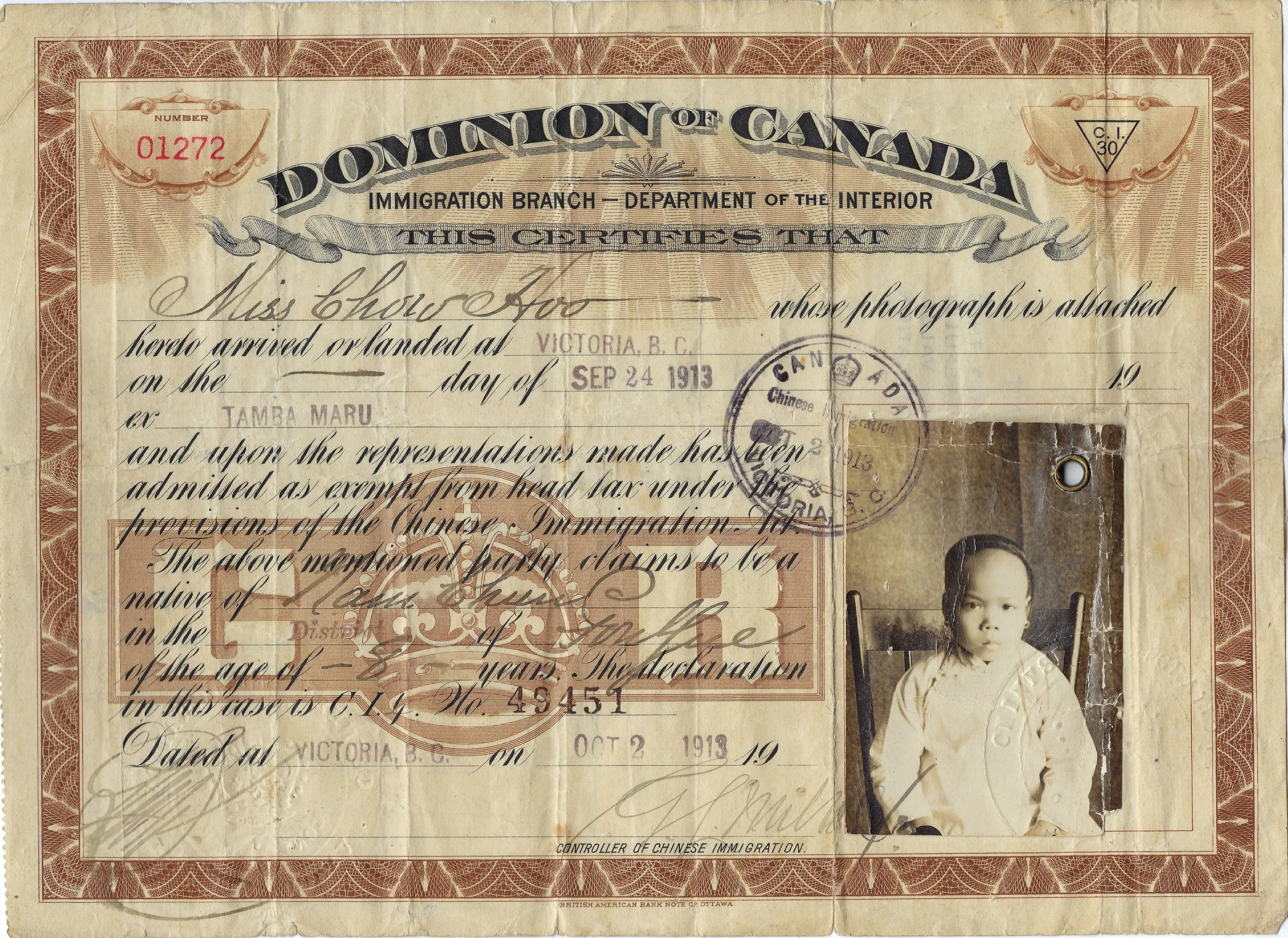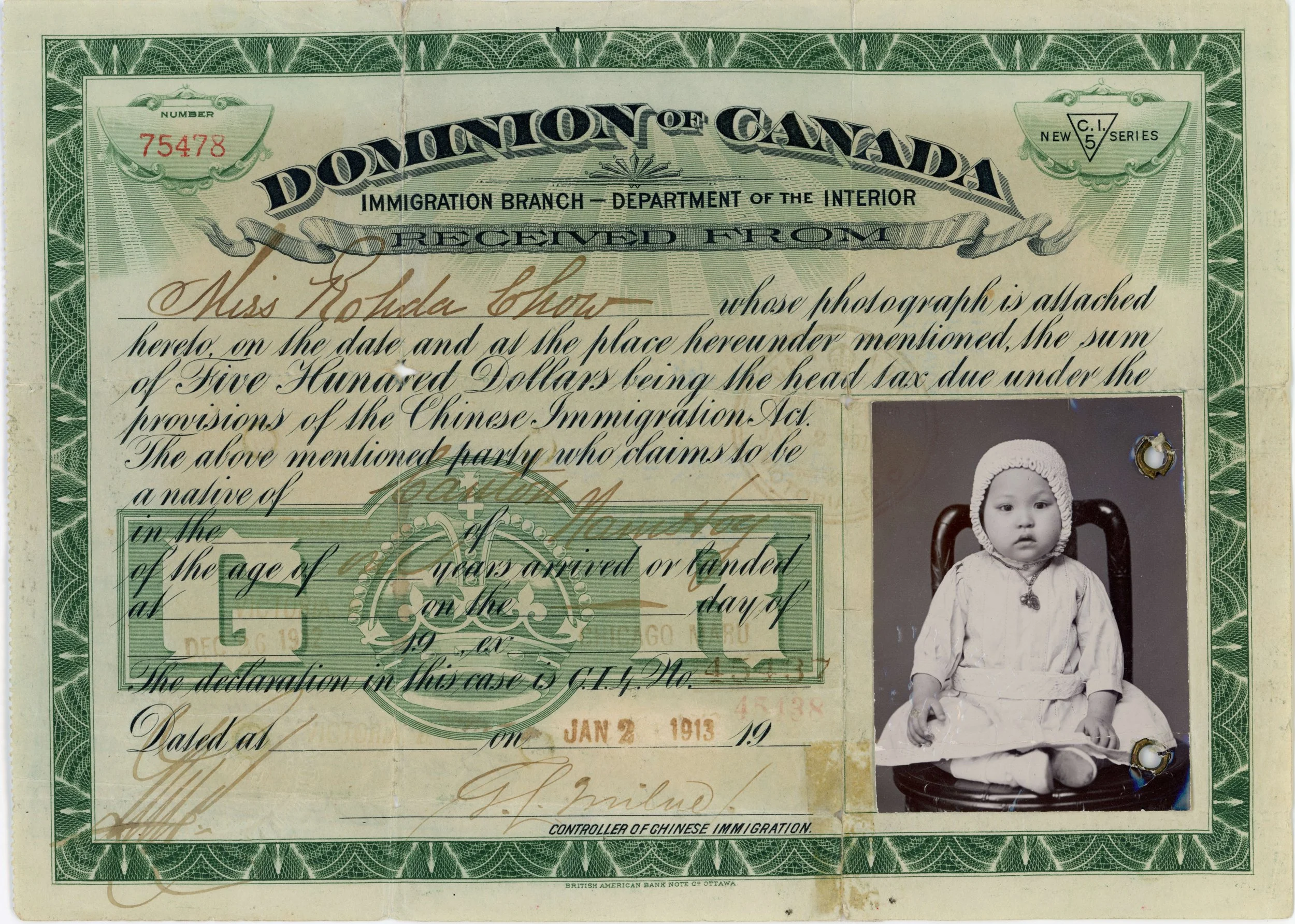 The exclusion act allowed individuals to leave Canada for a period, normally less than a few years. Some returnees sold their immigration documents, allowing someone else to enter Canada under their name. These are the Paper Sons, named as many of them entered as the “son” of an existing resident during the head tax era. Paper Son also refers to those who arrived on forged documents. While the true extent of these men can never be known for certain, it is estimated that some 11,000 men came to Canada as Paper Sons at some point.