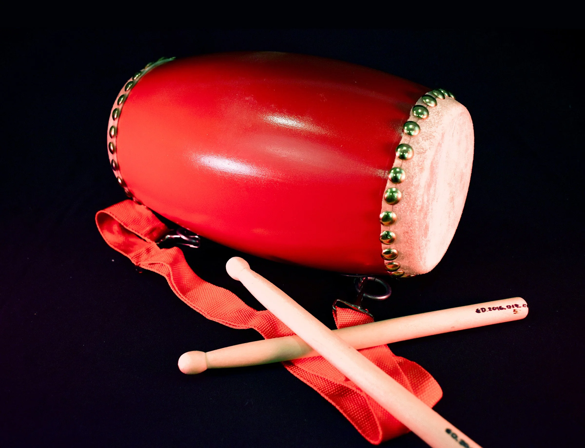 The traditional Chinese waist drum, also called “腰鼓 yāo gǔ”. The drum is attached to the waist via strap and is struck with either drumsticks or one’s hands, allowing greater maneuverability as the drummer dances during the performance.