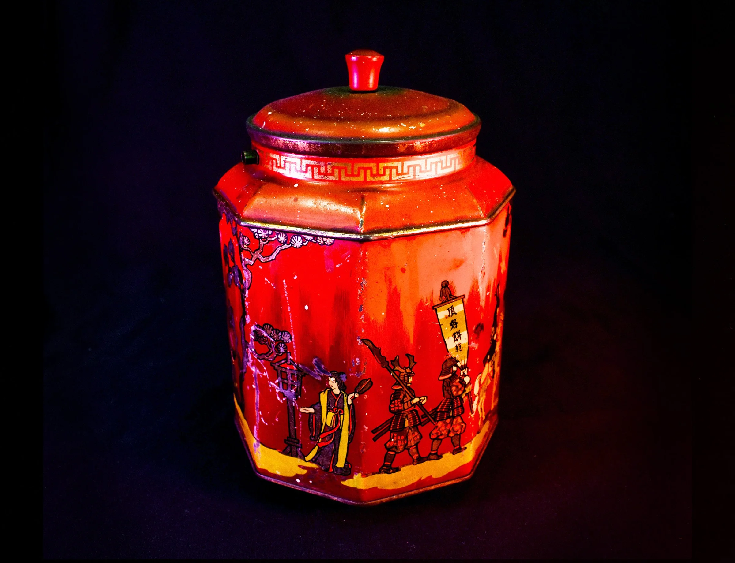 Peek Frean is a biscuit and confectionary manufacturing brand, owned by United Biscuits (UK). These biscuit tins depict Chinese figures and images without any association with Chinese manufacturers. Despite the racism towards Chinese people, Chinese imagery remained, and continues to be, a popular feature of advertising.