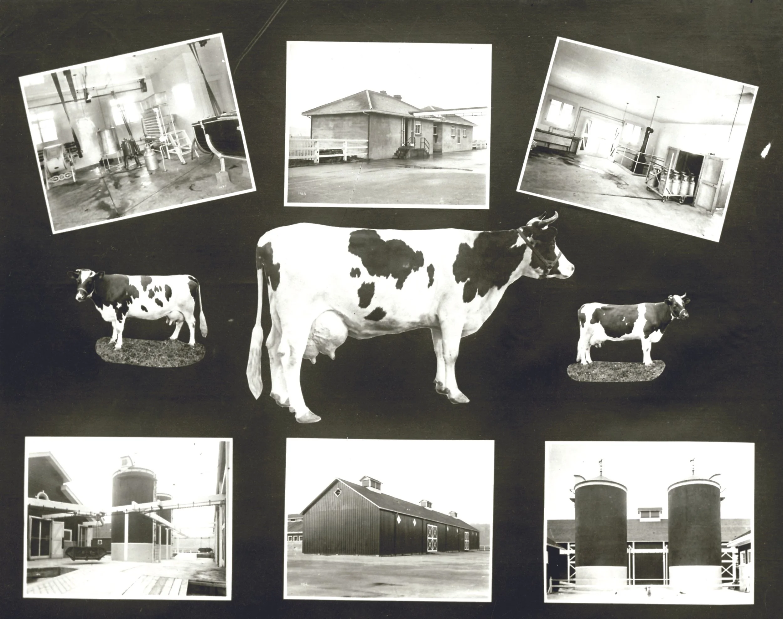 Collage, Colony Farm - Out buildings and cows, Coquitlam Archives C5-S01-SS01-GN46