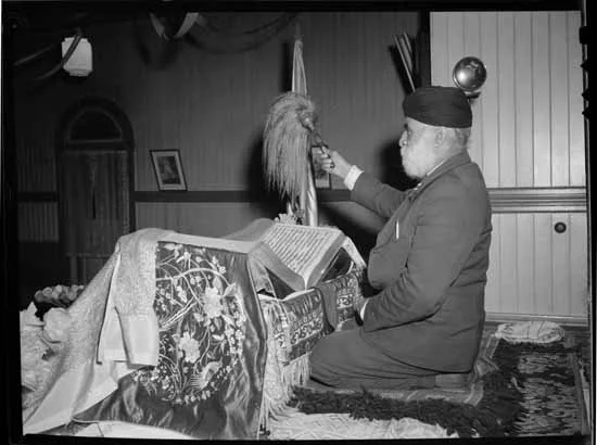 Image: An unidentified Sikh man attends the 12th annual International Woodworkers of America convention at Hotel Vancouver, January 15, 1949. Vancouver Public Library, accession #80796C, photographer Art Jones, public domain.