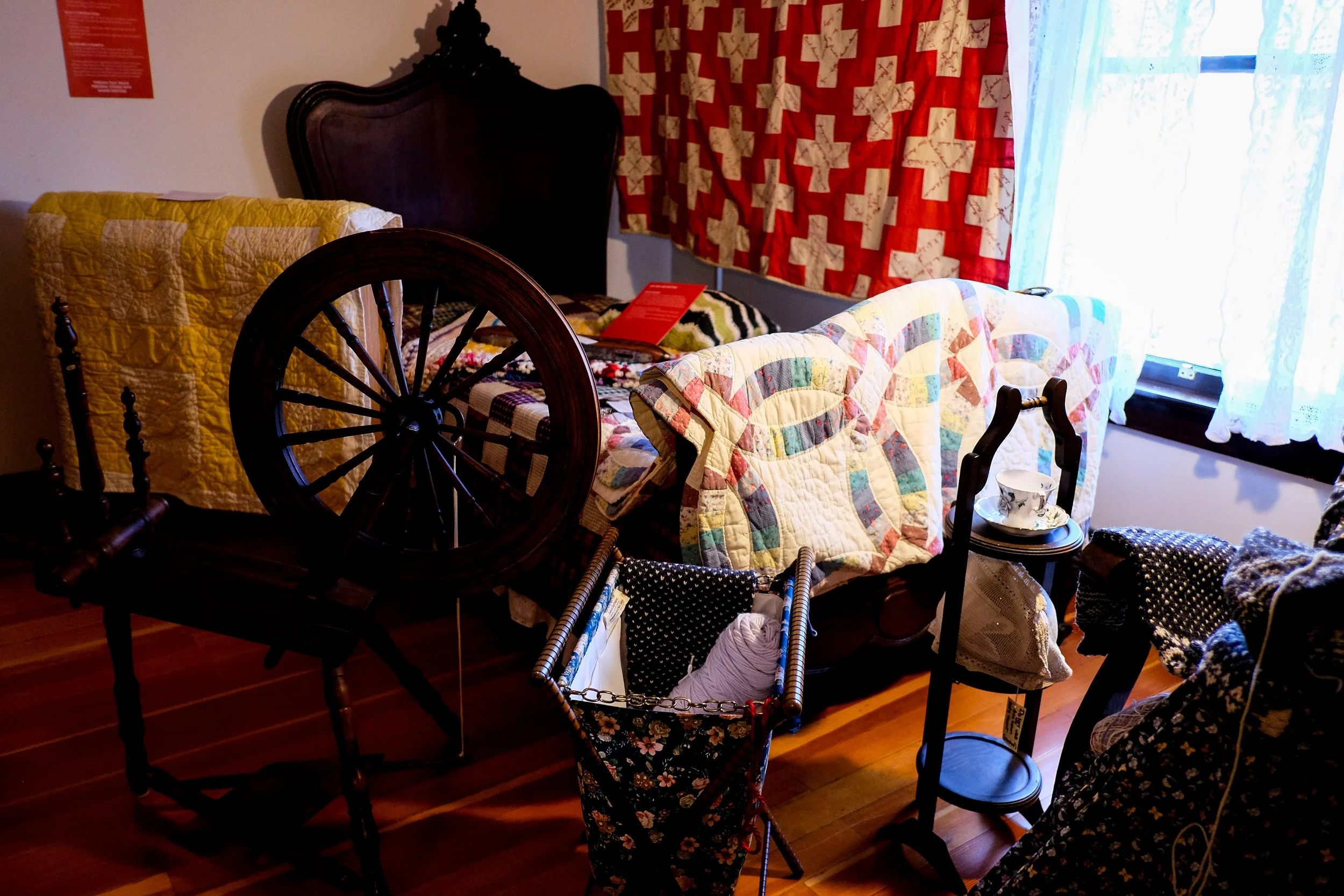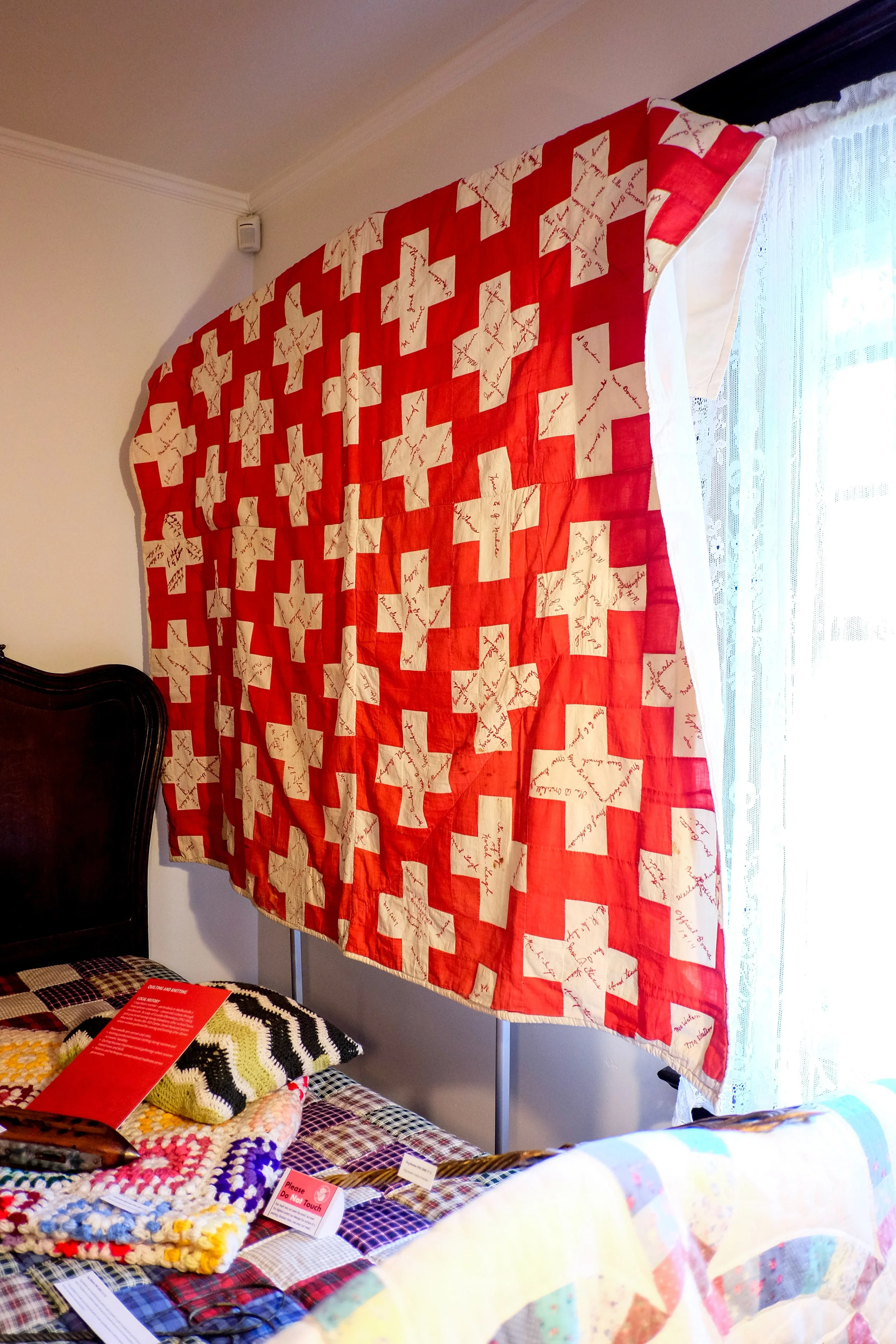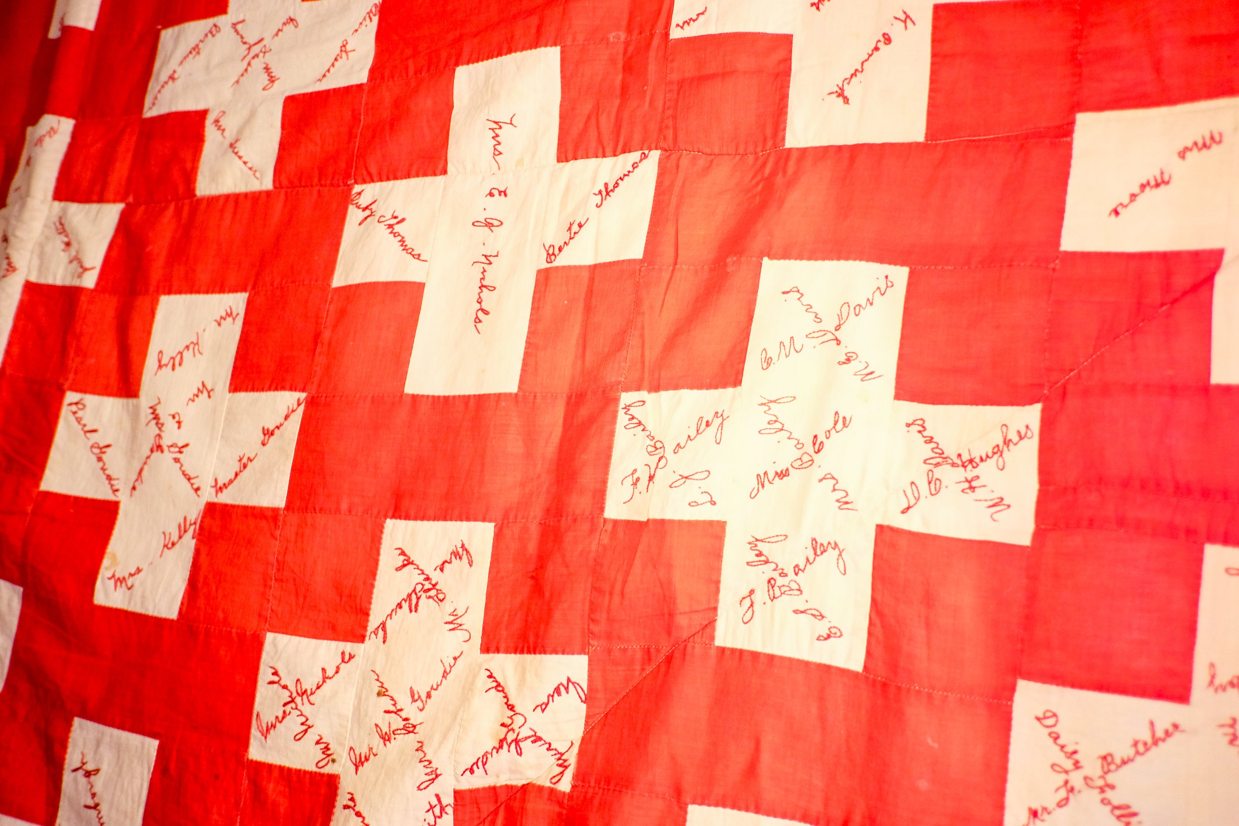 Features autographs of local women (see red quilt.)