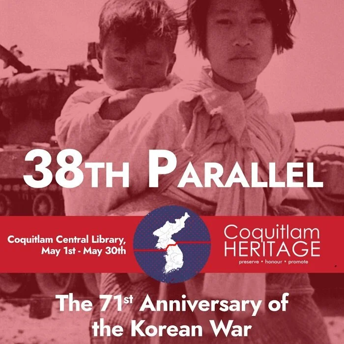 38th Parallel: The 71st Anniversary of the Korean War is on display at Coquitlam Public Library City Centre until May 31, 2021. Our hope is to bring attention to this war that impacted the lives of so many. For those that lost their lives in this war, military and civilian, we remember them.
