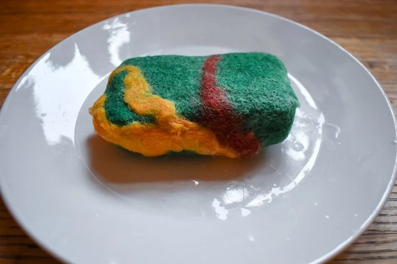 Continue for at least 10 minutes or until the wool feels felted and not loose under your hands