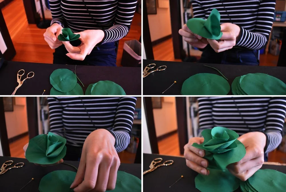 Twist the discs around the bobby pin a couple of times to create more curves and folds.