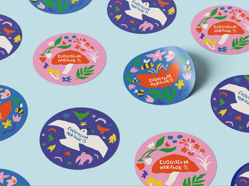 We'll be looking at all this and more during our summer events in the community. Come visit us at various festivals and community events over the next few months. Collect our free 2023 stickers, buy your own Coquitlam Heritage Natural Heritage t-shirt, take a photo in front of our specially-designed selfie wall, and more! See you there!